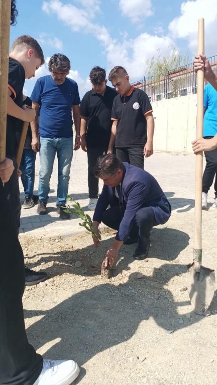 "Yeşil Vatan - Benim Okulum Geleceğe Çare" etkinlikleri kapsamında İlçe Milli Eğitim Müdürümüz Sayın Mustafa BÖLÜKBAŞI ve İlçe Şube Müdürlerimizin katılımlarıyla okulumuz bahçesine fidan dikimi gerçekleştirildi.